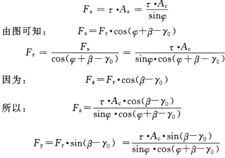 作用在切屑上的力如上图所示,上图(a)是切屑形成情况、切削有关参数;上图(b)是把切屑单独分离出来分析其受力情况。